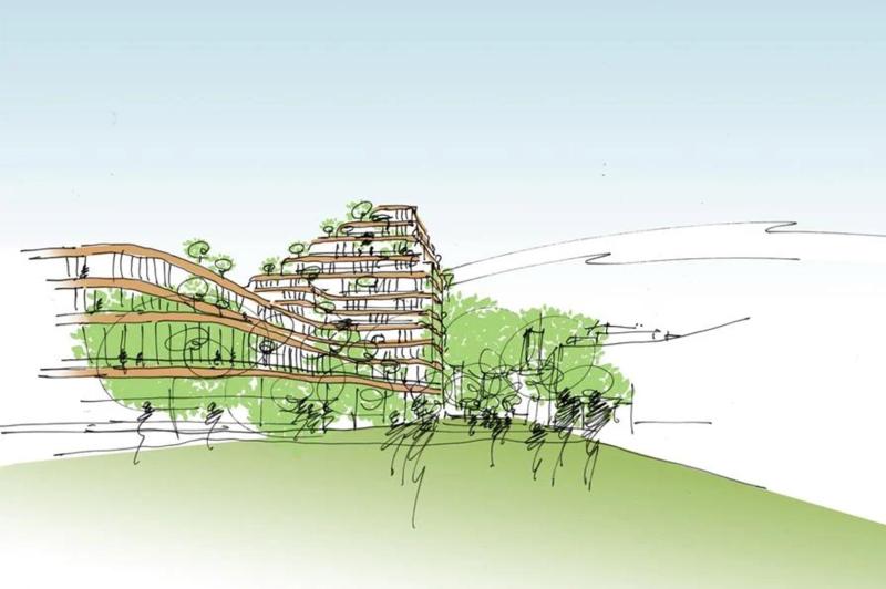 Aan de Leeuwarder Tesselschadestraat komt een groot en ‘iconisch’ houten gebouw boven op parkeergarage De Revius. Het biedt ruimte aan woningen en kantoren.