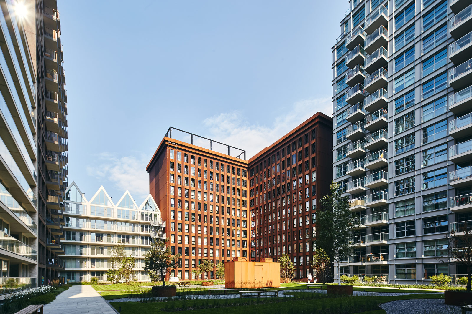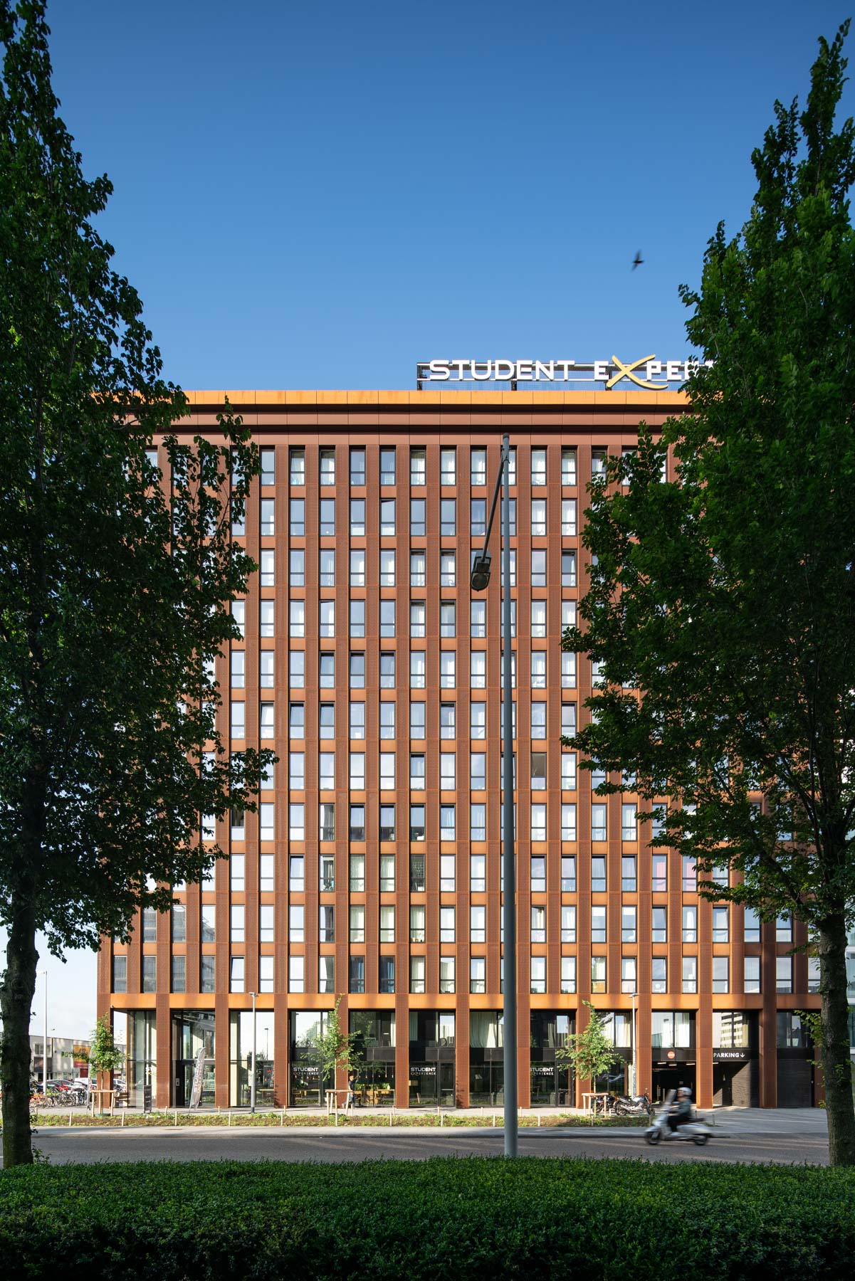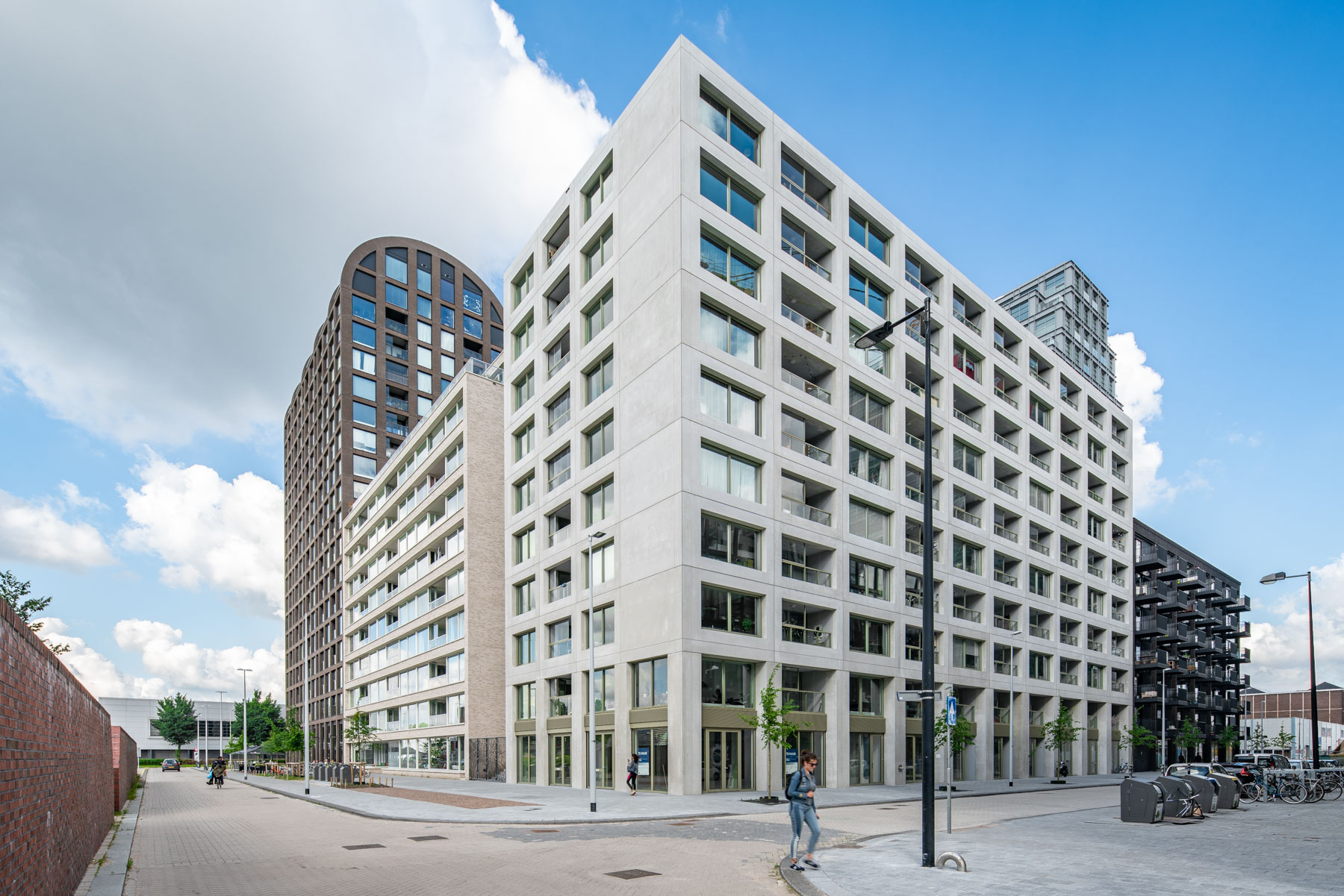 Duurzaamheid is geïntegreerd door het gebruik van robuuste materialen en een efficiënt 3D-BIM ontwerpproces. De woningen zijn gemiddeld 24 m² groot en beschikken over een eigen keuken en badkamer. Gemeenschappelijke faciliteiten omvatten een lounge, wasserette, studieruimtes, een binnentuin en een sportveld op het dak. De realisatie werd afgerond in 2017, waarbij de bouw volgde op een voorbereidingstraject dat startte in 2011.