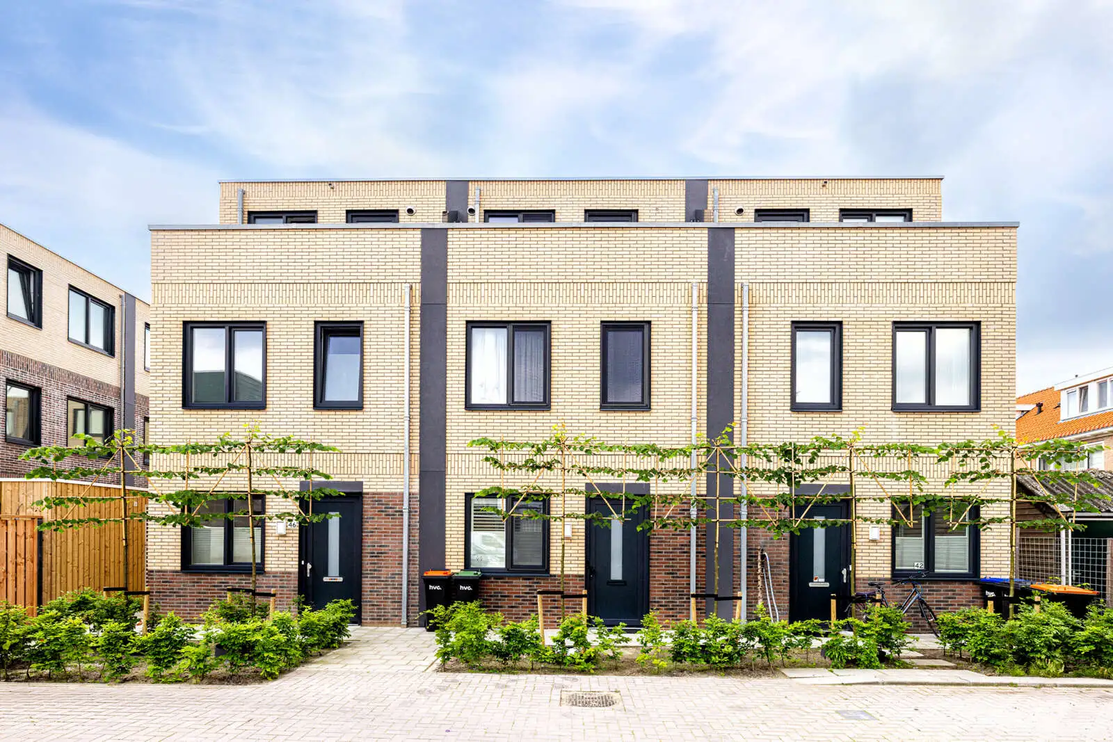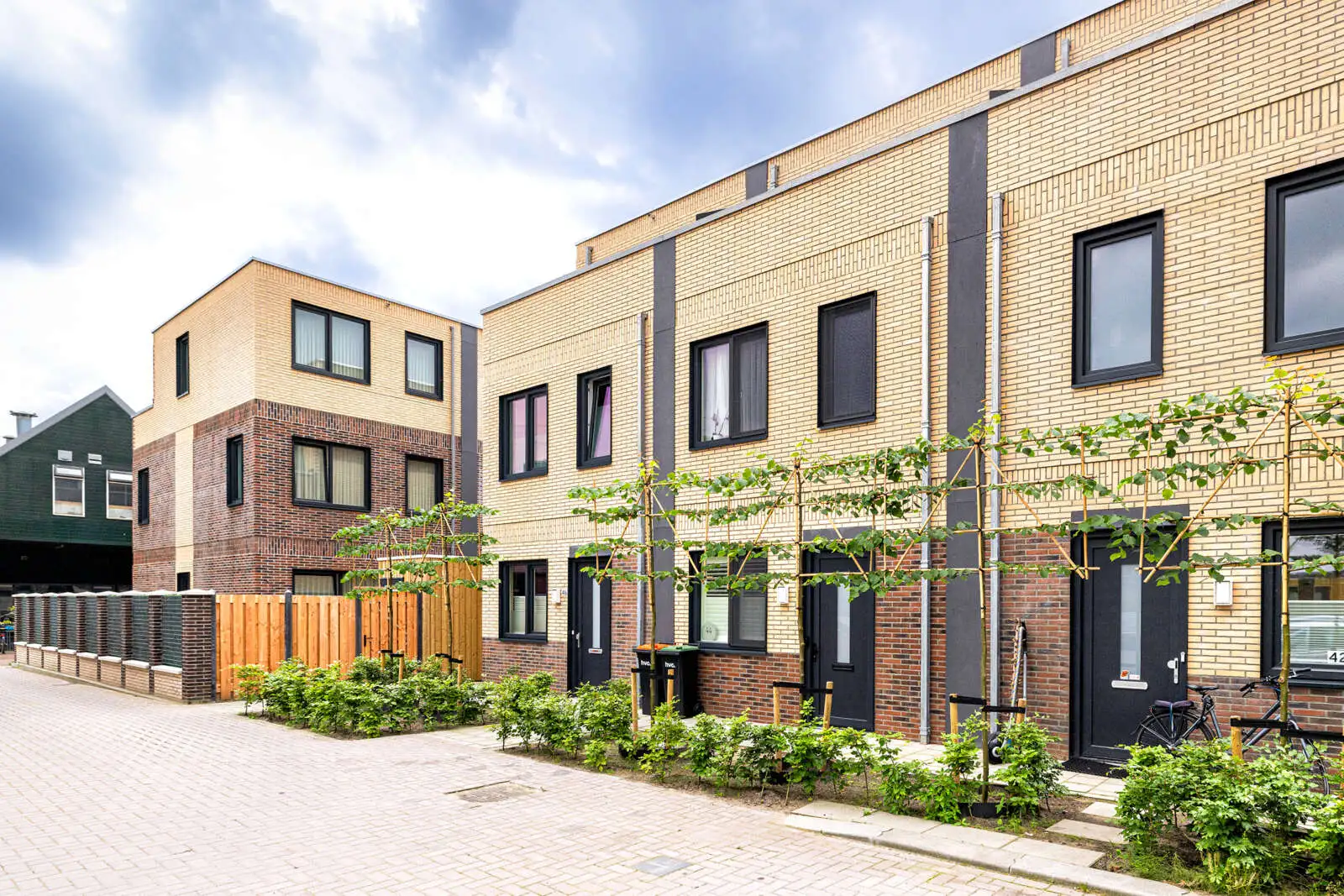 Duurzaamheid is geborgd door de toepassing van circulaire materialen en een industriële productiemethode in de fabriek, wat de impact op de bouwlocatie minimaliseert. De woningen zijn opgebouwd uit drie woonlagen en beschikken over een woonoppervlakte variërend van 135 tot 150 m². Kenmerkend zijn de vier tot vijf slaapkamers en de rechtopstaande achtergevel voor maximale ruimtebenutting. De woningen zijn volledig prefab geproduceerd en binnen enkele dagen op de fundering gemonteerd en afgewerkt. Het project is in het vierde kwartaal van 2023 opgeleverd.