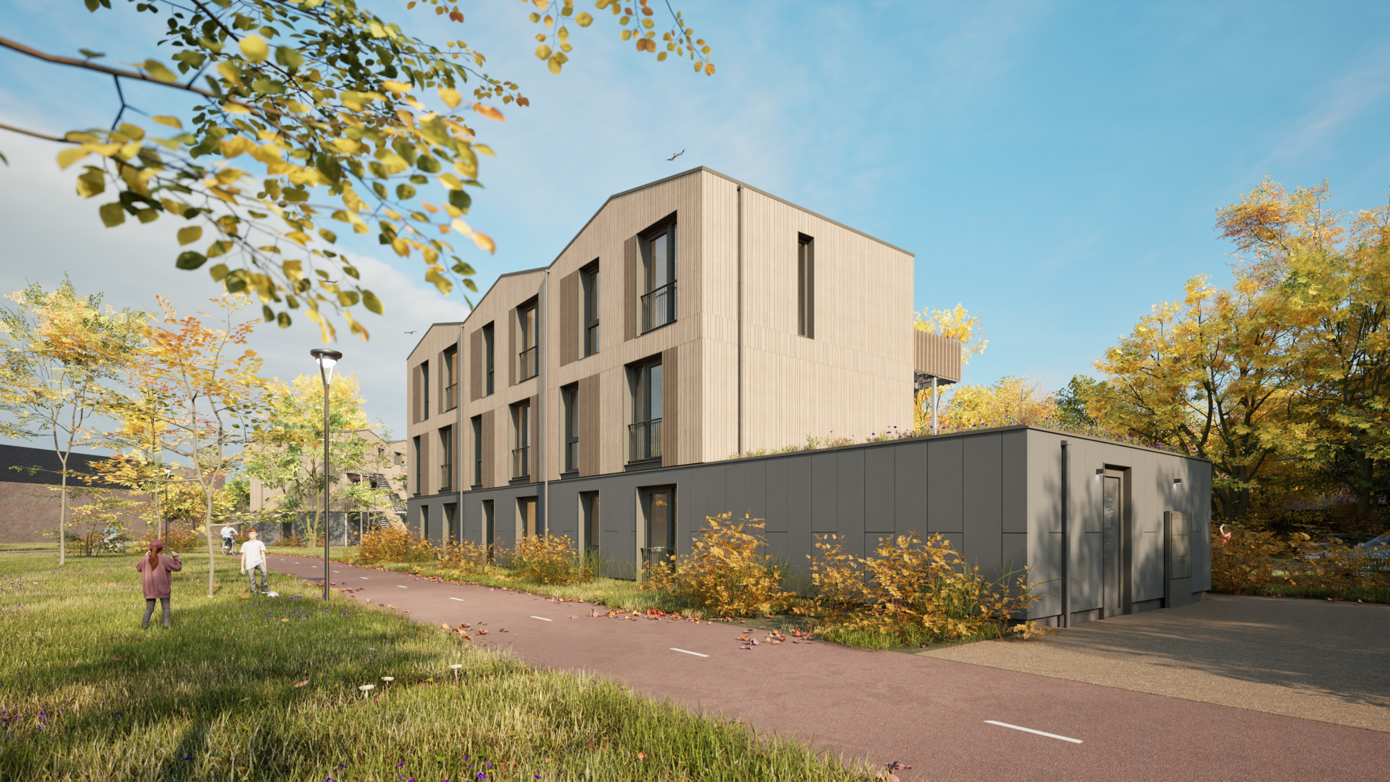 Op het voormalige SOMA-terrein wordt een flexibel wooncomplex gerealiseerd met 21 appartementen van 35 tot 50 m². De woningen worden geplaatst in een groene opzet met privétuinen aan de voorzijde en parkeergelegenheid aan de achterzijde, wat bijdraagt aan een rustige en functionele woonomgeving.